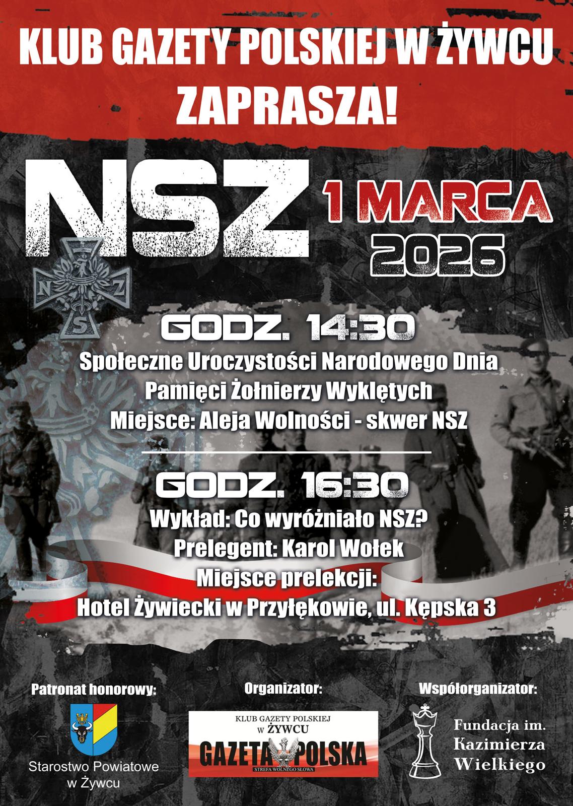 Pierwszego marca w Żywcu odbędą się Społeczne Uroczystości Narodowego Dnia Pamięci Żołnierzy Wyklętych, organizowane przez Klub Gazety Polskiej w Żywcu. Wydarzenie będzie okazją do wspólnego oddania hołdu bohaterom powojennego podziemia niepodległościowego oraz do pogłębionej refleksji nad historią i dziedzictwem Narodowych Sił Zbrojnych.